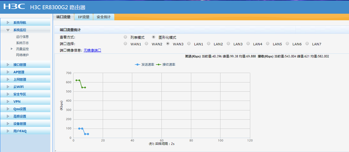 这个流量应该是一些外网访问WAN3口IP,WAN3口回复的报文,图中显示,访问WAN3口IP的流量还是有一些的,发送流量很小,应该是部分回复报文,可以抓一下WAN3口的报文,看下这些都是什么报文。