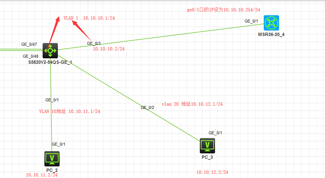 问题1:pc2可以通PC3,但不能通G1/0/3口 10.10.10.2/24,G3口应该是vlan1,不是所有vlan默认都和VLAN1通吗?还有G3口连接路由,不是用单臂路由的情况下是不是交换的G3口就不用做Trunk口?
