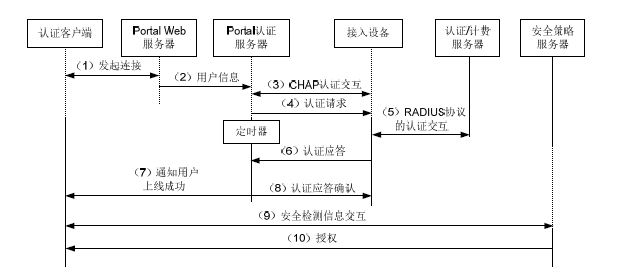 当终端从接入设备上线(假设接入设备为D1,设备的IP为IP1),那么设备会发起portal认证流程,对终端的web访问进行重定向,重定向后终端会访问认证页面(就是你给出的流程图中的第一个步骤)。