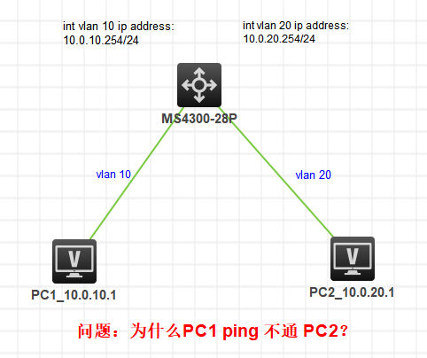 ms4300-28p 创建两个vlan,并分别配置好网关,相应端口下接两台PC,但PC之间相互ping不通?