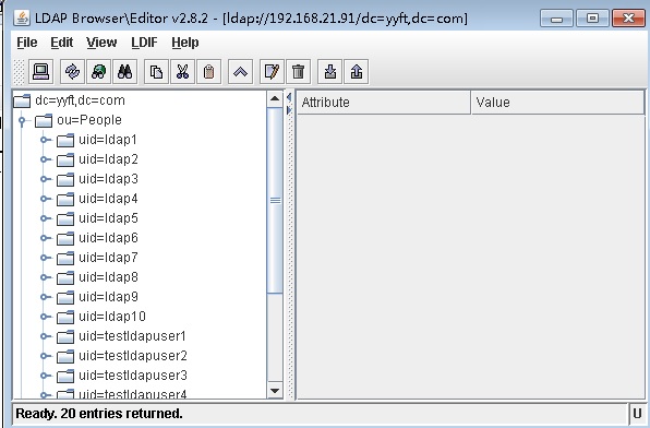 看截图ou为people,那你的管理员账号是哪个?cn=(用户名),ou=people,dc=yyft,dc=com