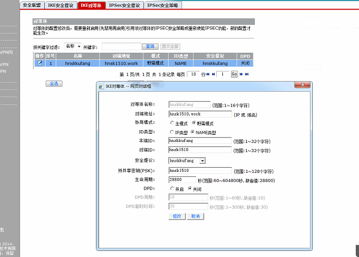 我ike profile中的对端id使用的是fqdn方式,这个是不是需要修改成userfqdn的啊