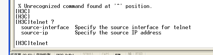 我在模拟器上做实验,交换机S5820,家里有个真机S3600,我知道命令有些不一样,划VLAN,设置交换机账户密码这些啊,都设了,还能设置账户可以telnet的功能,就是最后一步我记得要开启telnet服务功能,如图,怎么输都不行,