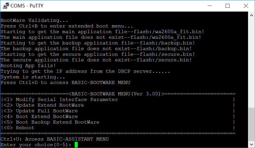 重启ap,当出现“Press Ctrl+B to enter extend boot menu...”时,键入<Ctrl+B>,系统提示: