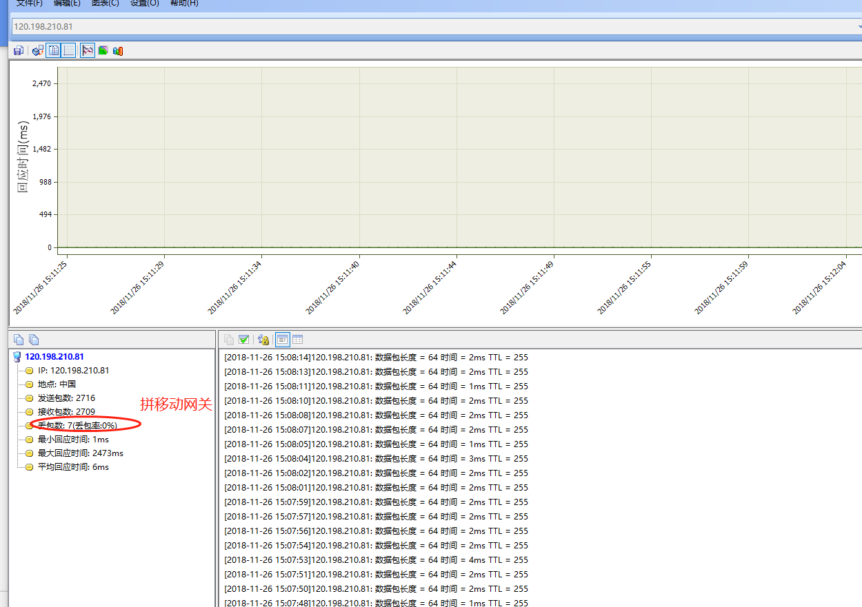 这是拼移动因定IP网关只掉7个,明显跟拼QQ不是一个档次;
