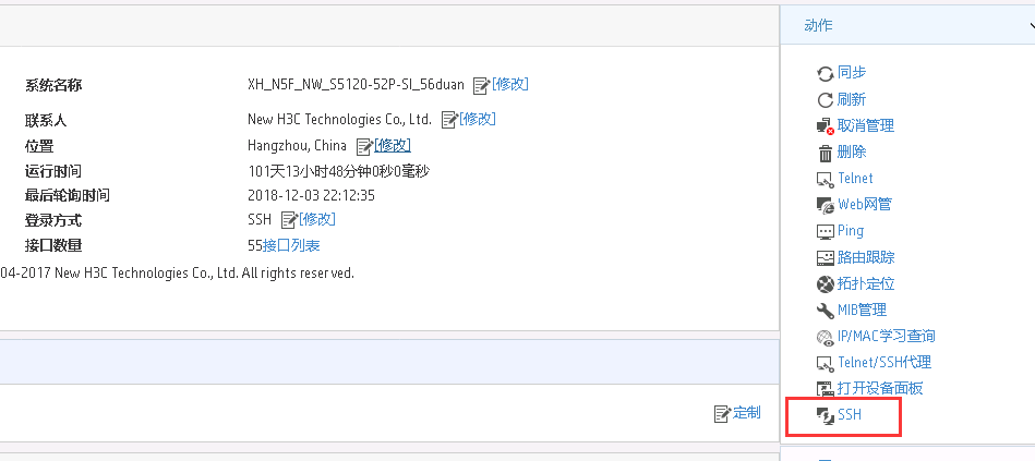 IMC平台上有地方选择SSH设备的软件和路径吗?