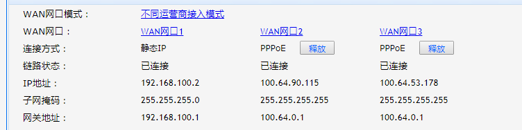 状态都是正常的,wan2和wan3 都能电信的ppoe 接口,都能正常获取ip地址的