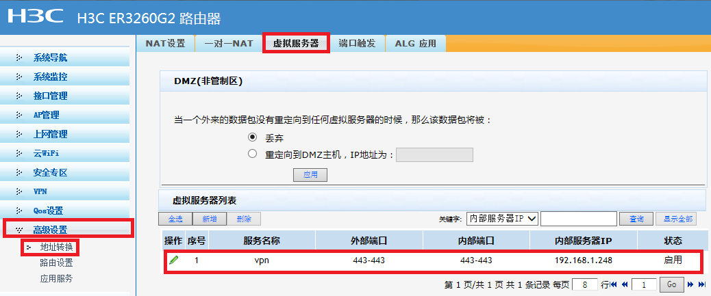 这个SSL VPN是基于sangfor vpn2050硬件设备配置的。当前wan1#口配置静态IP可正常访问SSL VPN服务的。并且在虚拟服务器地址转换中已经配置了,且生效状态。使用静态IP是可以正常访问VPN的。而切换到Wan2# PPOE的公网连接方式后,就不会自动解析出去。在线等待解决方案中……