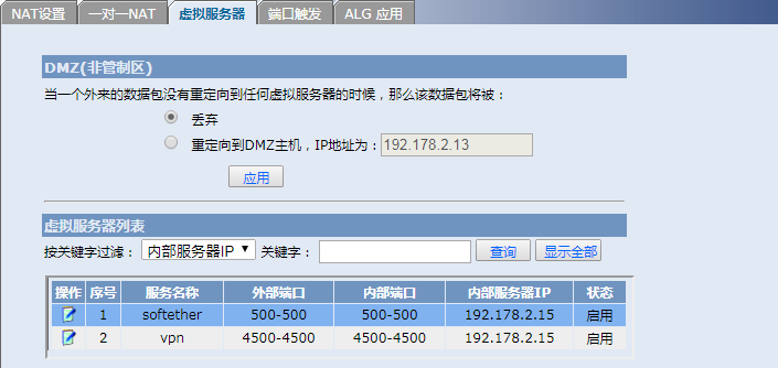 ER3108GW+虚拟服务器转发4500/500端口无效,