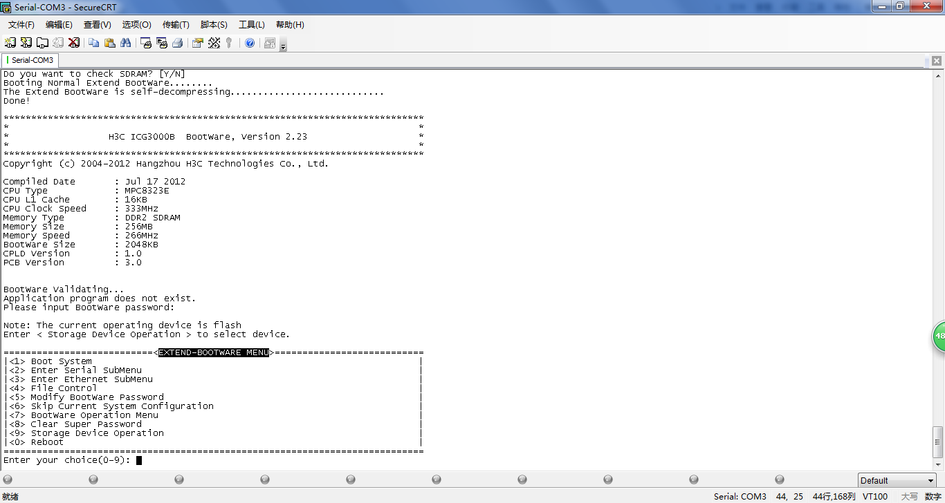 H3C ICG3000B 登陆提示EXTEND-BOOTWARE MENU要怎么处理