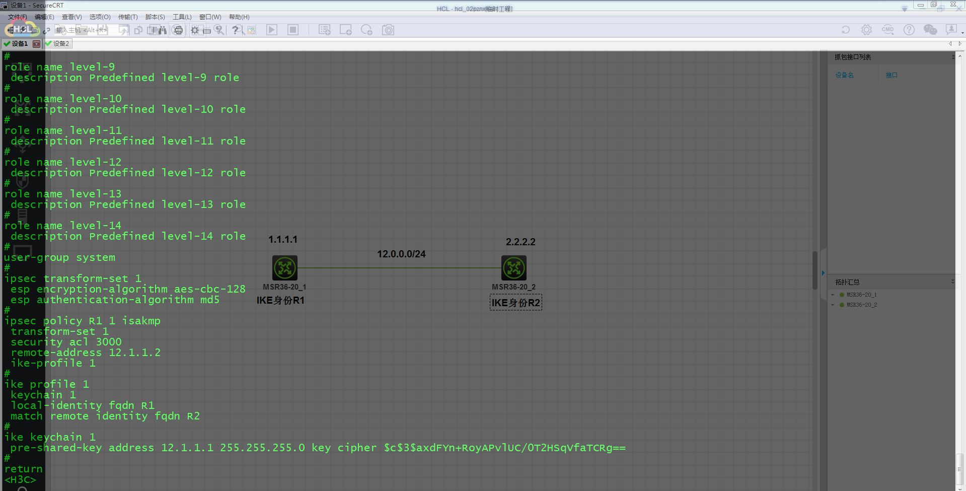 拓扑和基本配置如图所示,ipsec保护1.1.1.1和2.2.2.2之间的流量,但是你们看我在R2上ike写的匹配对端身份是aaa,这很明显与R1实际身份不同,按道理来说ike sa应该协商失败才对,但是比如说是在R1上ping -a 1.1.1.1 2.2.2.2,ping虽然不通,但是检查ike sa居然呈现RD协商成功的符号,我明明在R2上设置的对端身份明明是错误的,怎么会是协商成功呢??