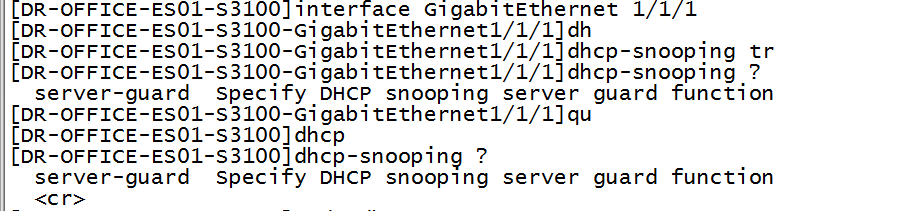 2,配置交换机上连接口为信任接口,也就是说只信任来自这个接口的dhcp报文,一般来讲,上连设备是dhcp server,应该是核心交换机或者网关设备