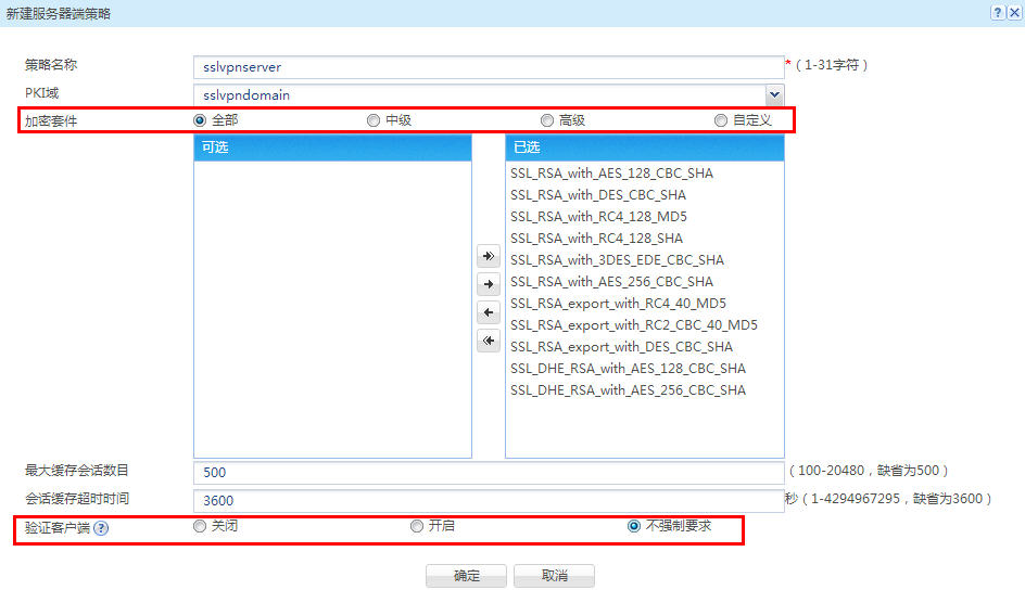 SSL VPN的加密套件中的,全部,中,高,自定义是有什么作用与区别的呀?