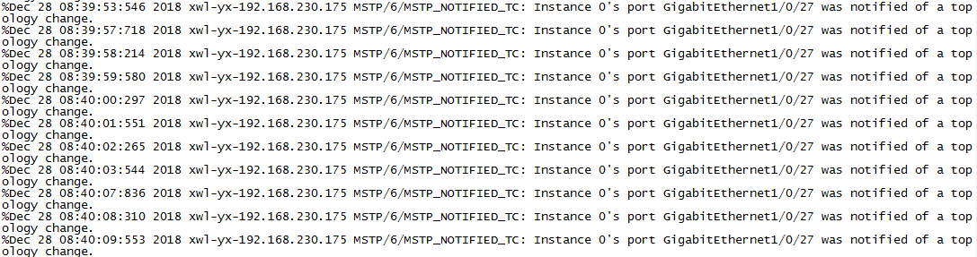 端口收到了tc报文,建议从1/0/27口的对端设备开始排查是否有端口up/down的震荡行为。