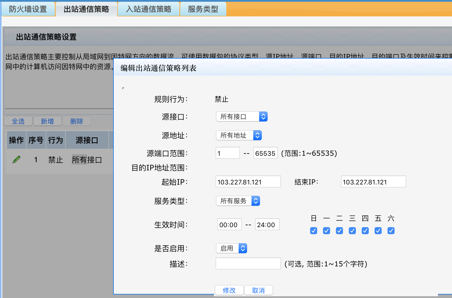 这里面不是有目的地址么,在里面网站地址禁止就行。这样就从这个接口出去不了。