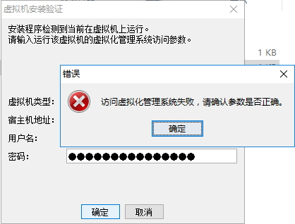 确认下这几个参数是否正确 各参数说明如下: · 虚拟机类型:虚拟机的类型。 · 宿主机地址:虚拟机所在宿主机的IP地址。 · 用户名:访问宿主机所用的用户名,该用户需具有宿主机的所有管理权限。 · 密码:用户名对应的密码。