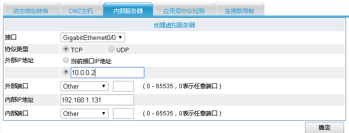 我想把 内网 192.168.1.131 的2000-2500端口映射到 外网10.0.0.2的 2000-2500端口