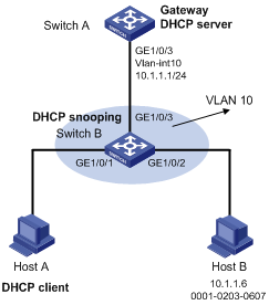 # 配置DHCP Snooping功能。