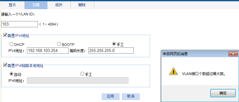 无法创建VLAN,提示VLAN接口个数超过最大数