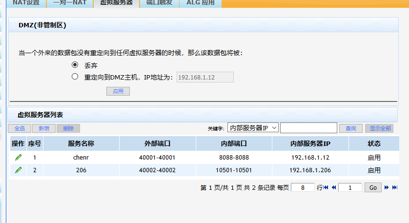 目前只有192.168.1.12服务器可以端口访问成功,192.168.1.206端口访问不了,而且,路由策略中第二条规则不能开启,一起开启12的服务器也无法访问,请问怎么回事,是否设置问题,应该如何配置