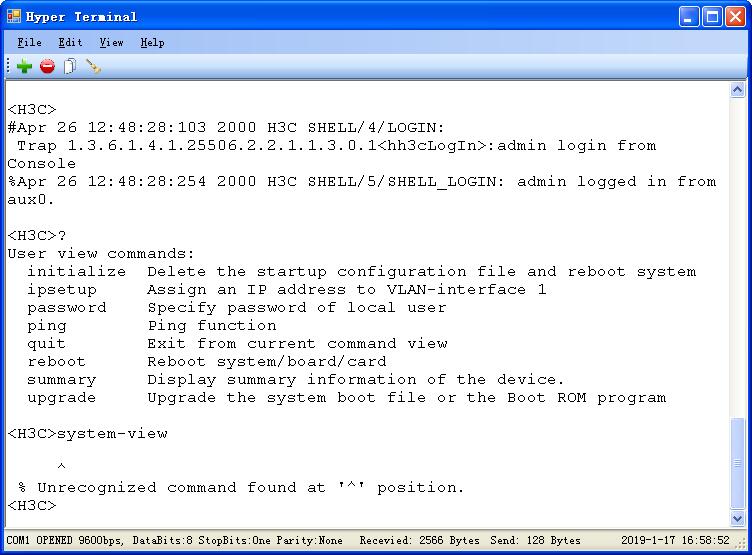 请问,S5500 是不是不支持使用命令行进行配置。我用超级终端联上,进不了系统视图。