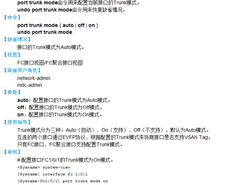H3C交换机上trunk没有mode区分,这个是思科设备私有的。