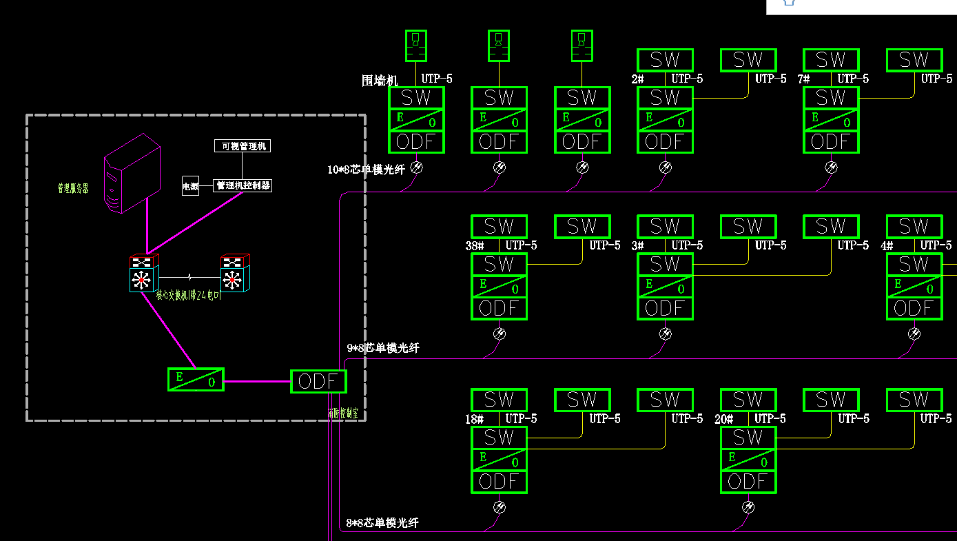 连接方式就是这个样子,ODF 表示八口光纤配线终端盒,E/O表示光纤收发器。