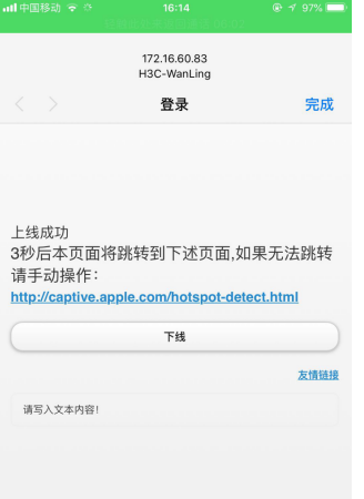 1、IMC EIA短信认证完毕后弹出的上线成功页面能否取消?