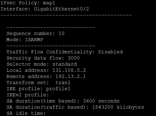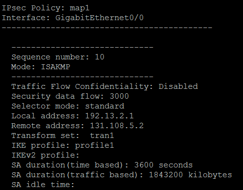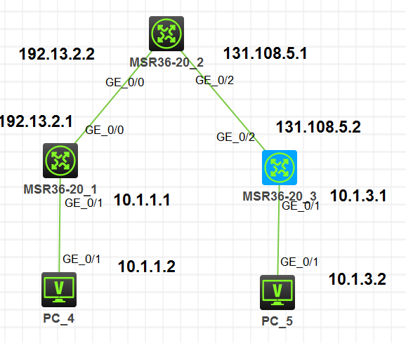 我没看出双方sa协商参数的问题,麻烦帮我看下,谢谢! MSR36-20_1 : # interface GigabitEthernet0/0 port link-mode route combo enable copper ip address 192.13.2.1 255.255.255.0 ipsec apply policy map1 # interface GigabitEthernet0/1 port link-mode route combo enable copper ip address 10.1.1.1 255.255.255.0 # ip route-static 10.1.3.0 24 192.13.2.2 # acl advanced 3000 rule 5 permit ip source 10.1.1.0 0.0.0.255 destination 10.1.3.0 0.0.0.255 # ipsec transform-set tran1 esp encryption-algorithm aes-cbc-128 esp authentication-algorithm sha1 # ipsec policy map1 10 isakmp transform-set tran1 security acl 3000 local-address 192.13.2.1 remote-address 131.108.5.2 ike-profile profile1 # ike profile profile1 keychain keychain2 match remote identity address 131.108.5.2 255.255.255.0 # ike keychain keychain2 pre-shared-key address 131.108.5.2 255.255.255.0 key cipher $c$3$2g+pn7jExw7R3KZvj1VG52RIzL6d3Q4= # MSR36-20_3: interface GigabitEthernet0/1 port link-mode route combo enable copper ip address 10.1.3.1 255.255.255.0 # interface GigabitEthernet0/2 port link-mode route combo enable copper ip address 131.108.5.2 255.255.255.0 ipsec apply policy map1 # ip route-static 10.1.1.0 24 131.108.5.1 # acl advanced 3000 rule 5 permit ip source 10.1.3.0 0.0.0.255 destination 10.1.1.0 0.0.0.255 # ipsec transform-set tran1 esp encryption-algorithm aes-cbc-128 esp authentication-algorithm sha1 # ipsec policy map1 10 isakmp transform-set tran1 security acl 3000 local-address 131.108.5.2 remote-address 192.13.2.1 ike-profile profile1 # ike profile profile1 keychain keychain2 match remote identity address 192.13.2.1 255.255.255.0 # ike keychain keychain1 # ike keychain keychain2 pre-shared-key address 192.13.2.1 255.255.255.0 key cipher $c$3$npAtC+ZDTUxZF6j8P+DHUVCBIBT//h4= #