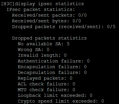 IPsec sa没有建立起来吧,display ipsec sa看下,有没有安全联盟,如果建立起来了,就看看是不是保护流里的保护网段写错了,报文丢弃原因是没有可用的SA,很有可能是IPsec SA没有建立起来