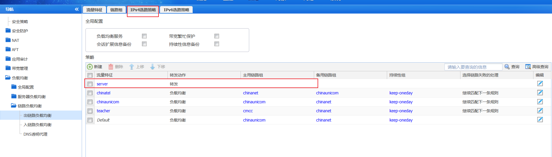 请问一下链路负载均衡策略的第一条 是什么意思 在链路负载均衡里,没有配置策略啊