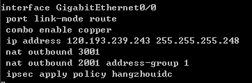路由器外网端口 G0/0 已经有一条vpn存在: ipsec apply policy hangzhouidc