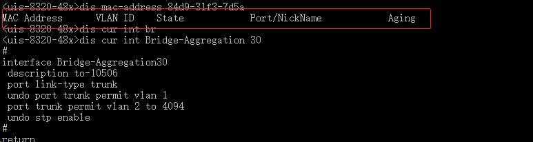 如下图在核心上查到该mac地址来自对端uis-8320,但在uis8320上却找不到该mac地址。这个一般是什么问题,大家有碰到过吗?