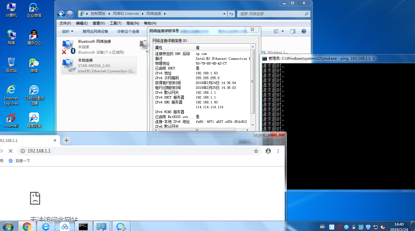 这个是内网电脑ping的是吧,网关是在路由器上吗?把电脑的防火墙关一下,看下设备的console口能不能进,可以在命令行ip address看下设备的管理地址。