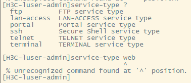 [H3C-luser-admin] service-type web //只有这个会出错