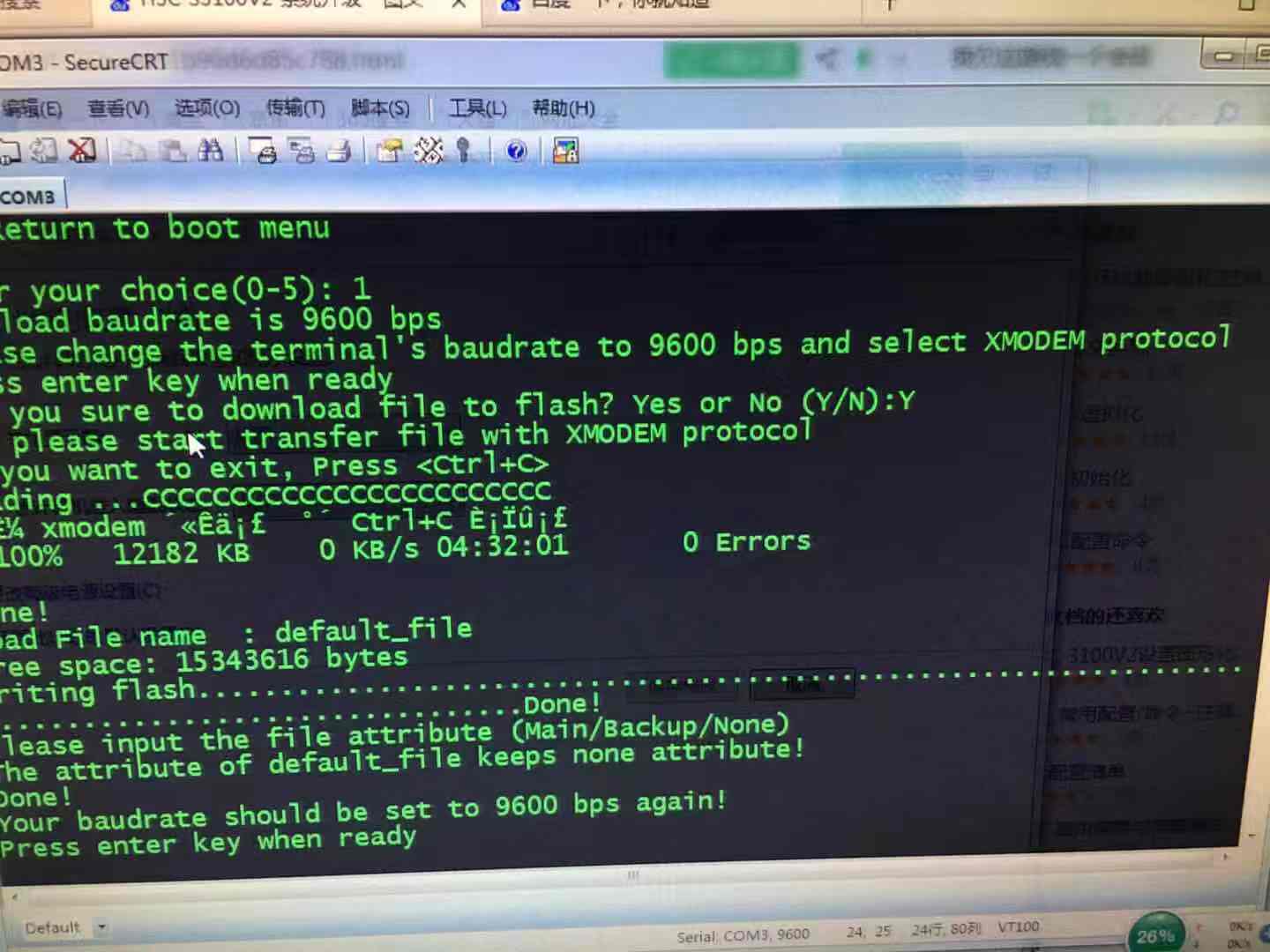 这个界面显示还没有上传版本啊,根本没刷呢,用超级终端上传慢,建议用tftp或ftp方式上传