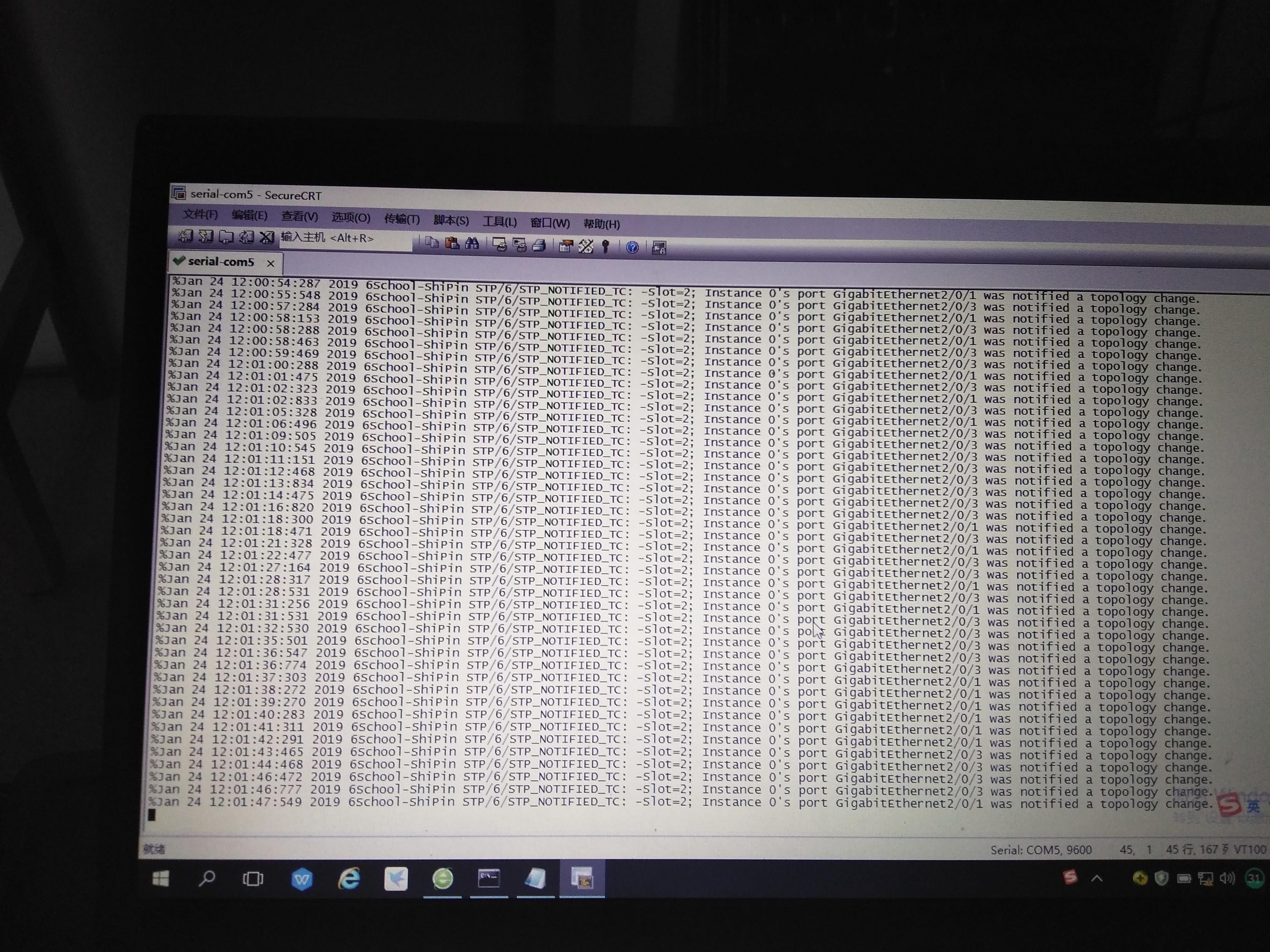 一台7003E的核心交换机上接了12个汇聚交换机,对这12个端口做引流策略,2天后交换机的这个12个端口中的其中2个端口一直在报stp信息,拔掉引流转发设备后就不再报