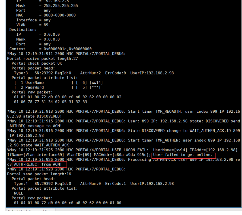 portal认证失败,交换机上的debug信息显示如上错误描述,不理解为什么,求大佬指教,谢谢