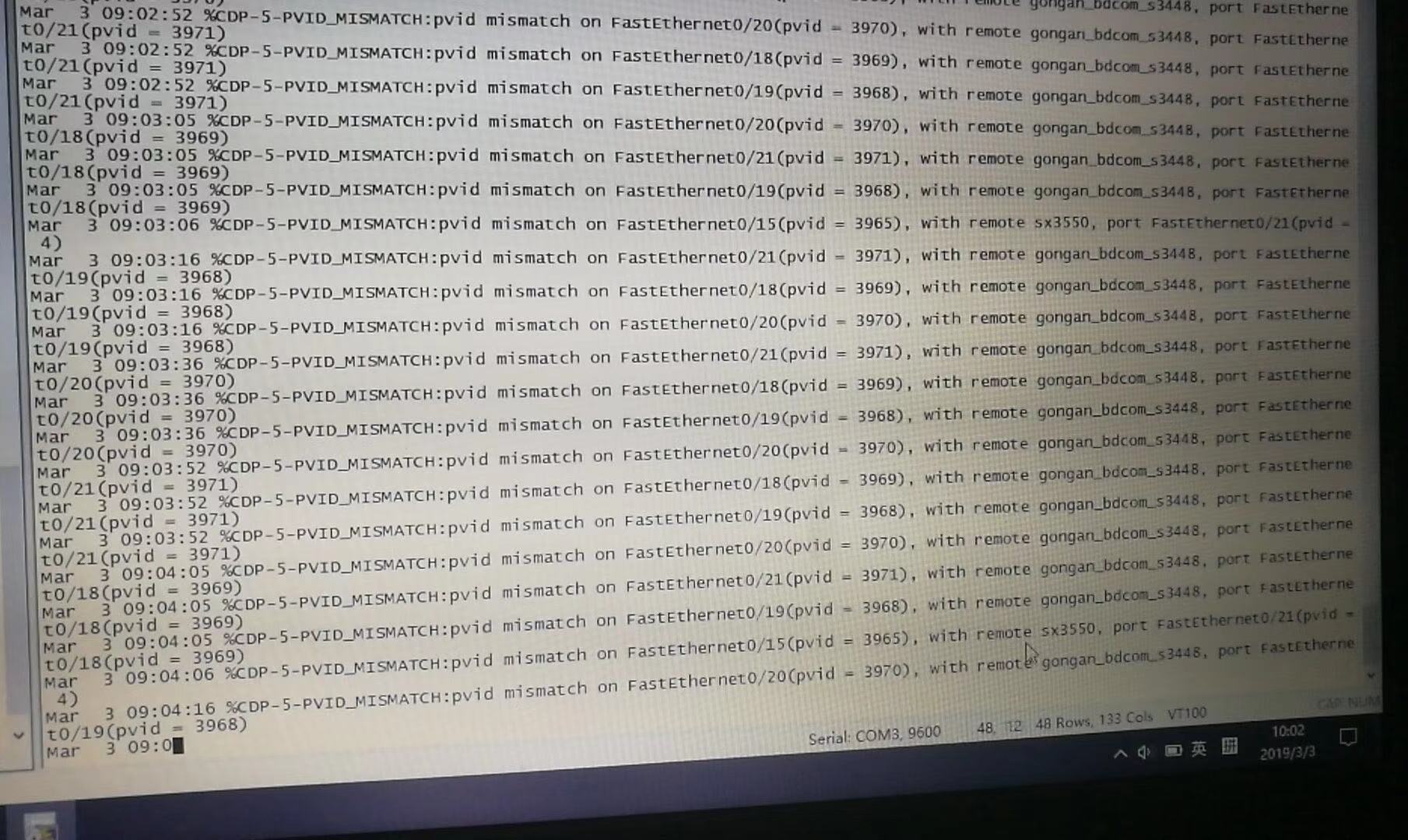 这个是交换机和对接交换机的PVID 不一样 的日志
