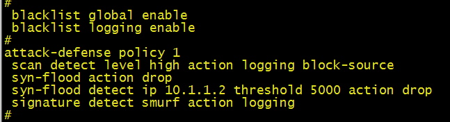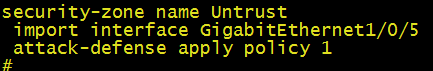 当前的配置表示为在攻击防范策略atk-policy-1中开启对IP地址10.1.1.2的SYN flood攻击防范检测,并指定触发阈值为5000。当设备监测到向该IP地址每秒发送的 SYN报文数持续达到或超过5000时,启动SSYN flood攻击防范。