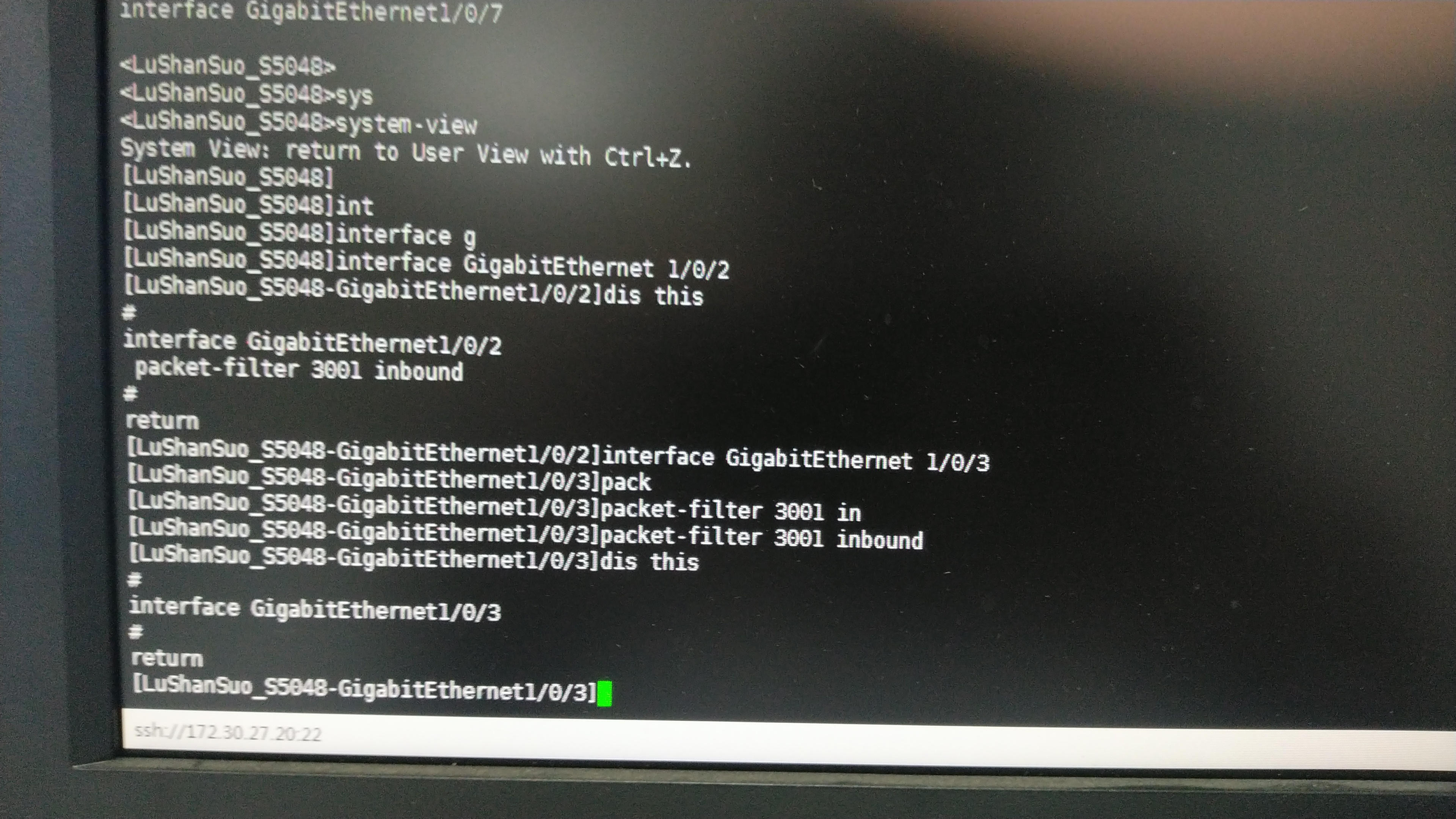 一条acl只能应用一个端口,第二端口应用的时候打完dis this发现并没有配置成功