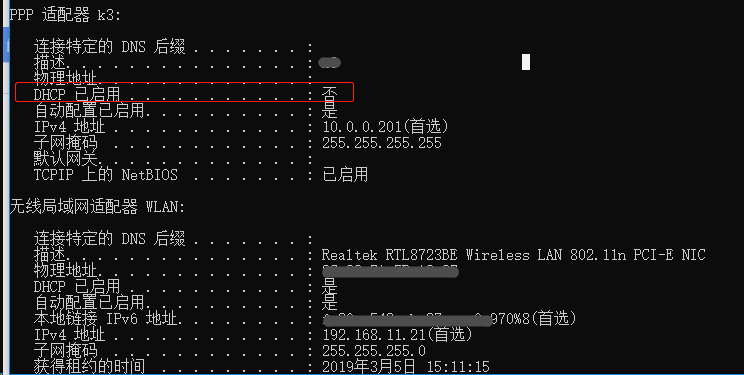 拨入地址范围是201-240,本地dhcp范围是100-200