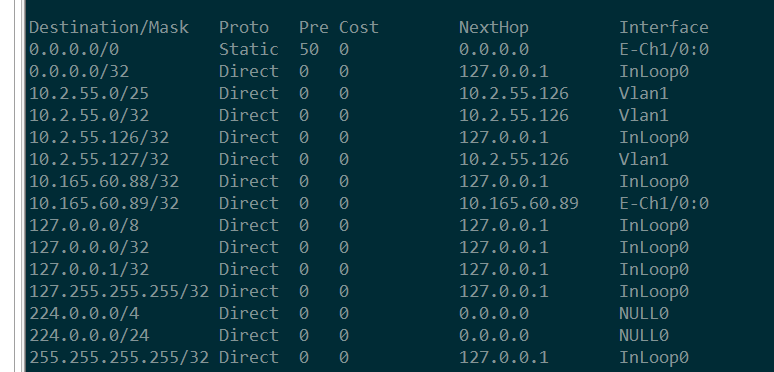 acl advanced 3001 rule 0 deny ip source 10.2.55.0 0.0.0.127 destination 10.2.0.0 0.0.7.255 rule 5 permit ip int e1/0:0 nat outbound 3001