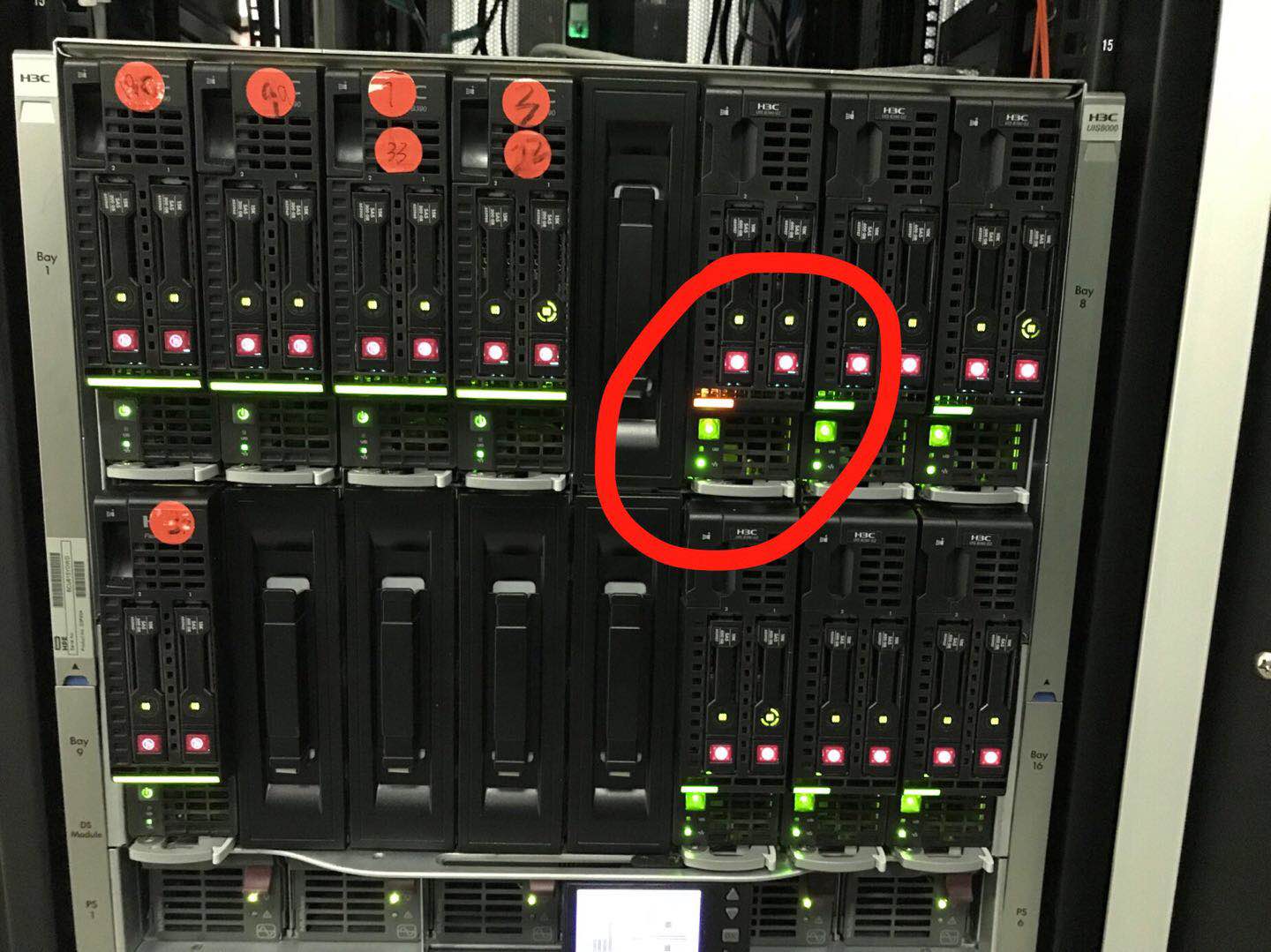 是硬盘上的还是刀片上的指示灯?可以通过如下链接中的用户指南查看具体指示灯的含义: