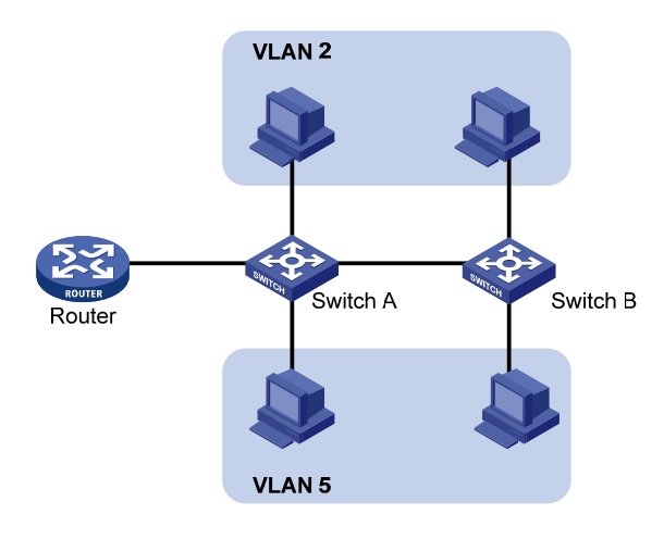 组网需求与附图相似,有SwitchA和SwitchB两台型号相同的交换机(S5120-V2),还有一台出口路由(ER6300G2)