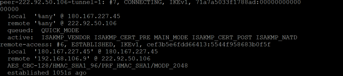 根据和对端沟通,对端采用peer+tunnel方式,收到我方设备的条目为remote-access,无法协商建立