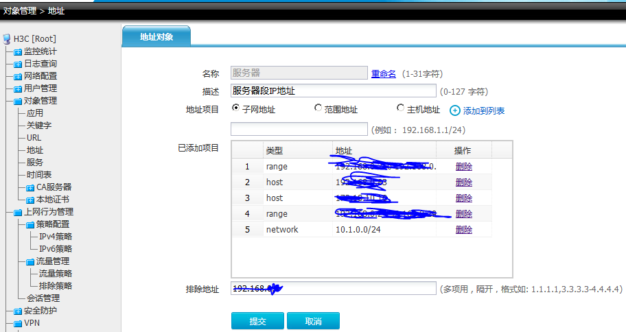 (1)、在 “对象管理”---> “ 地址 ” --->“ ipv4地址对象"