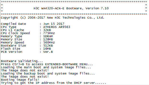 您好,按照提示,按ctrl+b进入bootware界面重新上传版本即可(具体方法请到官网【产品支持与服务】--【软件下载】-【无线】找到相对应的产品,点进去版本文件下面都有说明书的,按照说明书的升级指导进行升级就可以了)