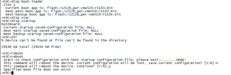 H3C S2126-PWR交换机多次TFTP升级S2126_PWR-CMW520-R1109.bin和S2126_PWR-CMW520-R1103.bin后,