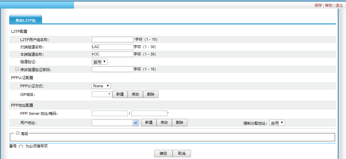 web页面查看L2TP配置,点开显示如下(已按命令行完整配置),若web页面修改又死机。